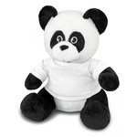 Soft panda plush toy with embroidered eyes and a polyester t-shirt which is available in eleven colours. Plush animals provide a cute and cuddly branding option and are great for brand recognition and spreading goodwill.