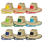 - Classic wide brim straw hat with coloured trim. This breathable hat is ideal for summer months.